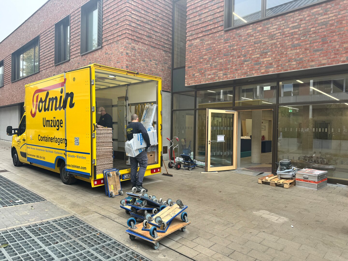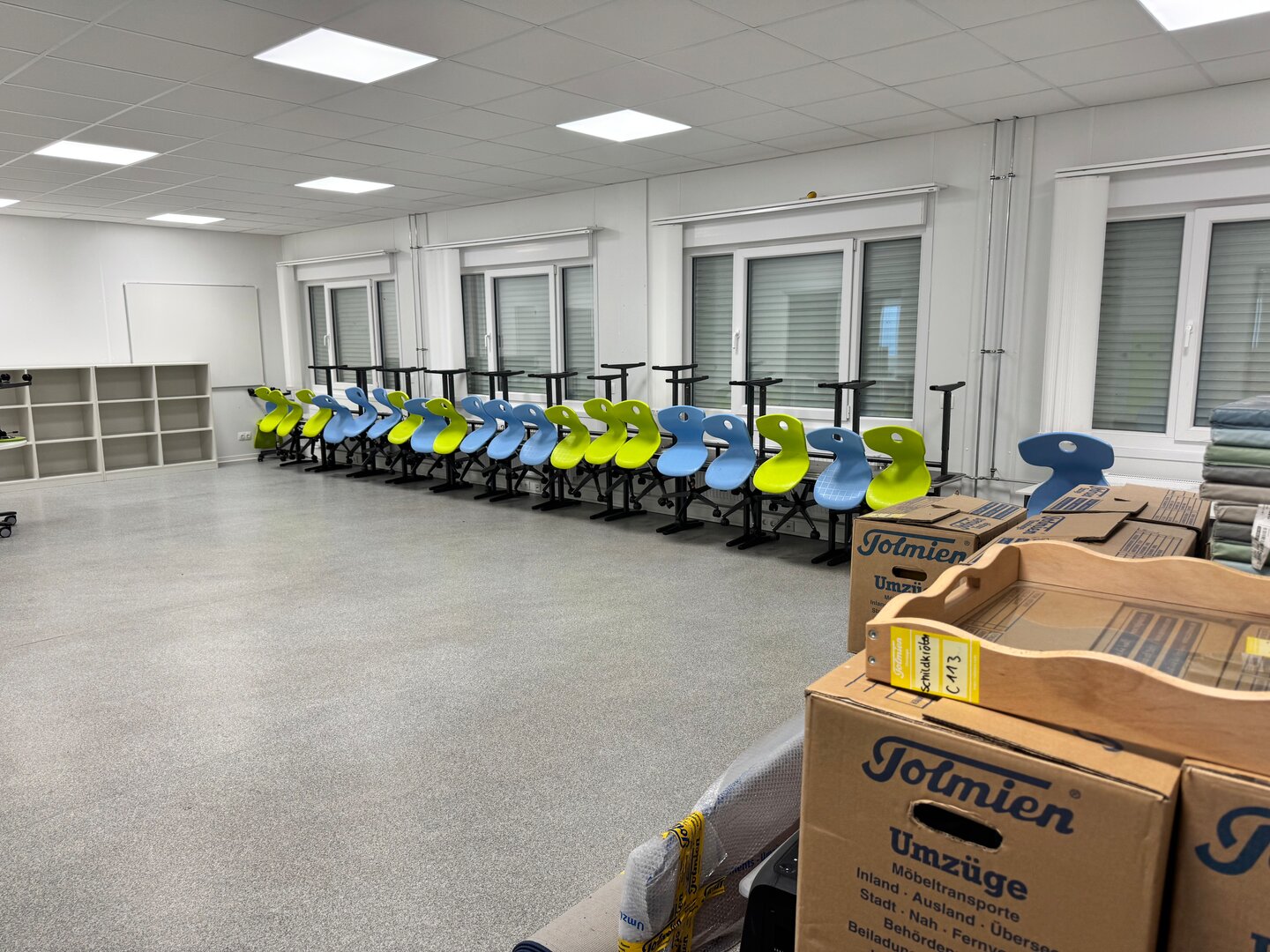 Am 15. und 16. Oktober 2025 war es dann endlich so weit: Das Umzugsunternehmen rückte an und brachte alle Kartons in unser neues Schulgebäude. Schon in den Ferien waren einige Kolleginnen und Kollegen fleißig, packten die ersten Kisten aus und richteten mit viel Liebe und Kreativität die neuen Räume für unsere Kinder ein.